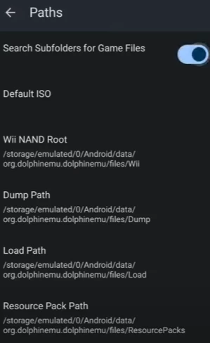 Откройте Paths и включите «Search Subfolders for Game Files», чтобы эмулятор искал образы игр в подпапках.