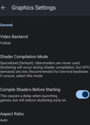 - Video Backend — Vulkan для Snapdragon и OpenGL для Mali. Если игра не запускается, выберите OpenGL.