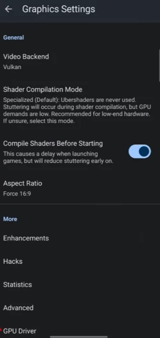 Осталось последнее — если у вас Snapdragon, вы можете загрузить кастомные драйвера в Graphics Settings → GPU Driver.