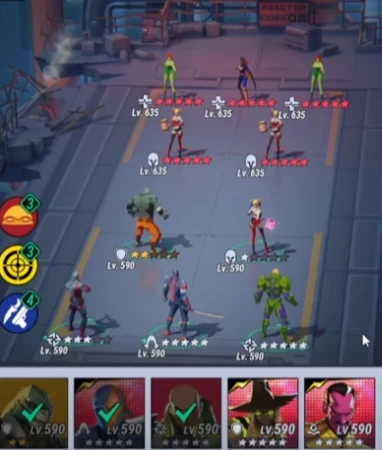 - Ambush Predator — наносит физический AoE-урон, равный 210% от ATK. Также вешает на врагов дебафф Shockwave на 10 секунд. Он уменьшает их физическую защиту на 25%. Полезный навык, если в вашем отряде есть Супермен, Супергёрл или Лекс.