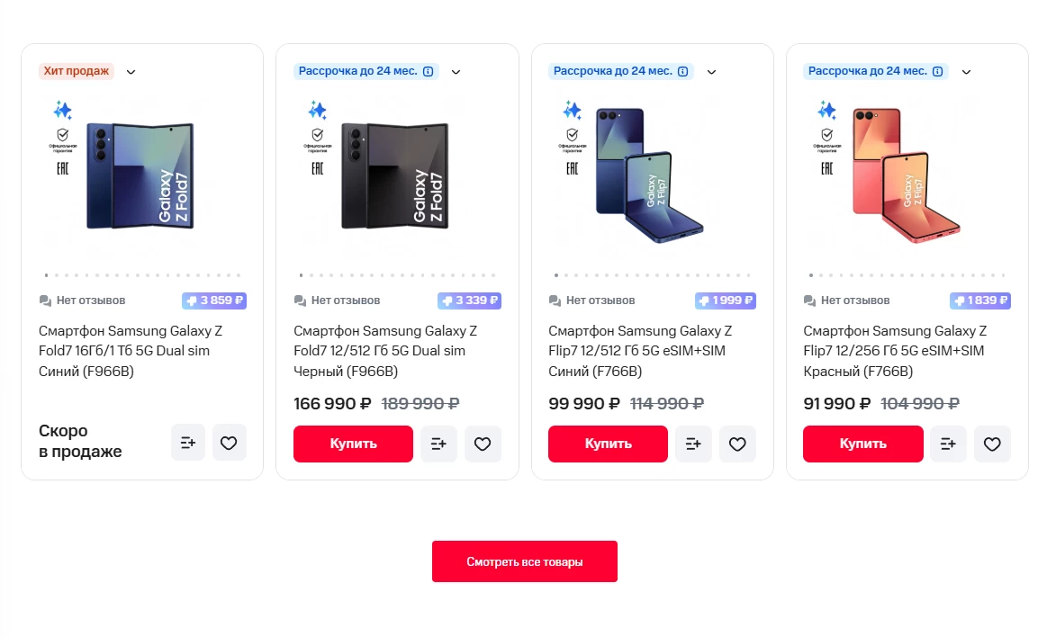 МТС начал продавать Galaxy Z Fold7 и Z Flip7 в России — 91 990 рублей за 12+256 ГБ
