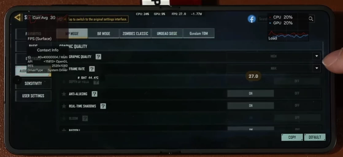 Call of Duty Mobile на высоком пресете графики и максимальном пресете FPS. Получаем стабильные 60 FPS без каких-либо просадок в домах и на открытой местности.