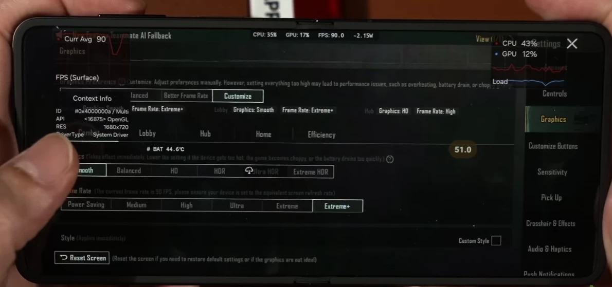 Графика в PUBG Mobile выставлена на низкий пресет и максимальный фреймрейт. Получаем 80-90 кадров.