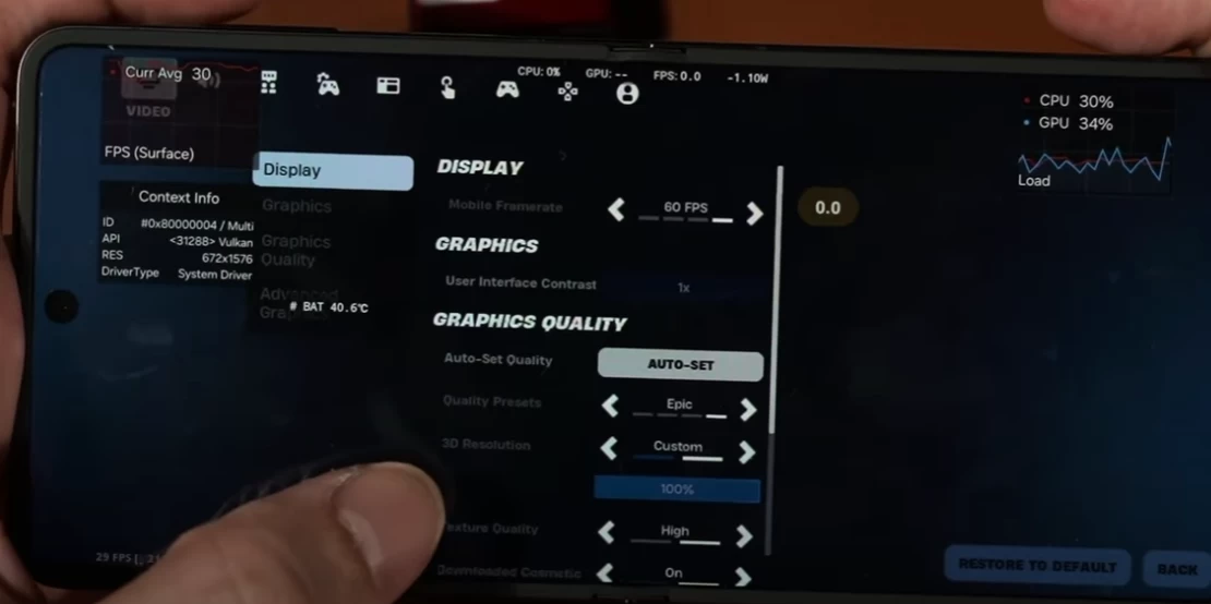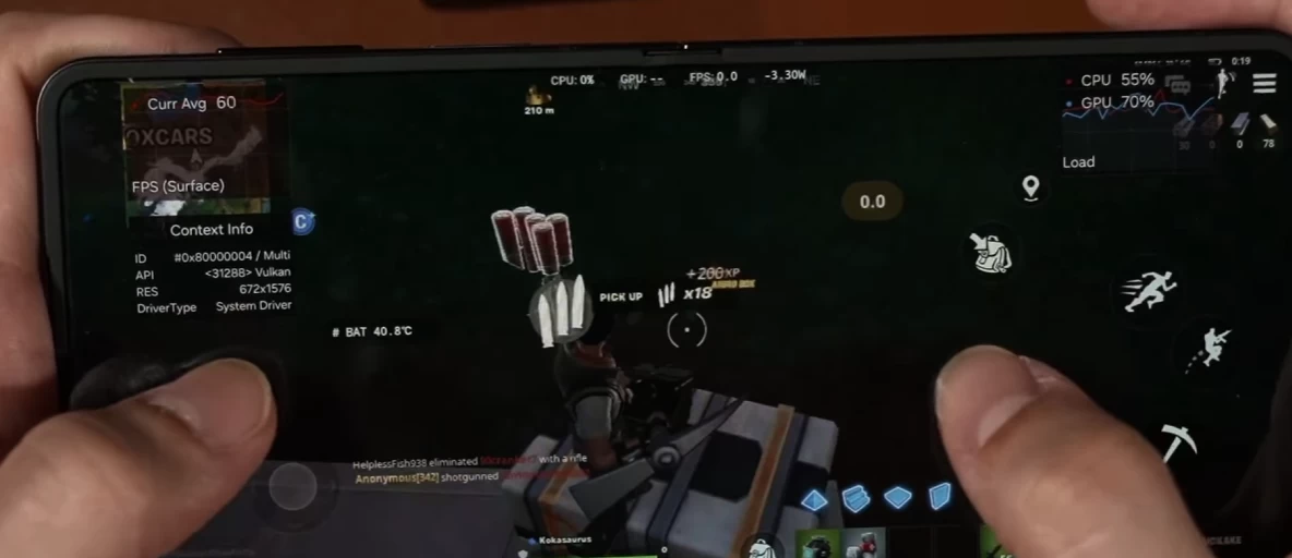Последняя игра в очереди — Fortnite. Графика эпическая, лок на 60 кадров. Есть просадки до 44 кадров, в остальном смартфон держится в районе 60 FPS.