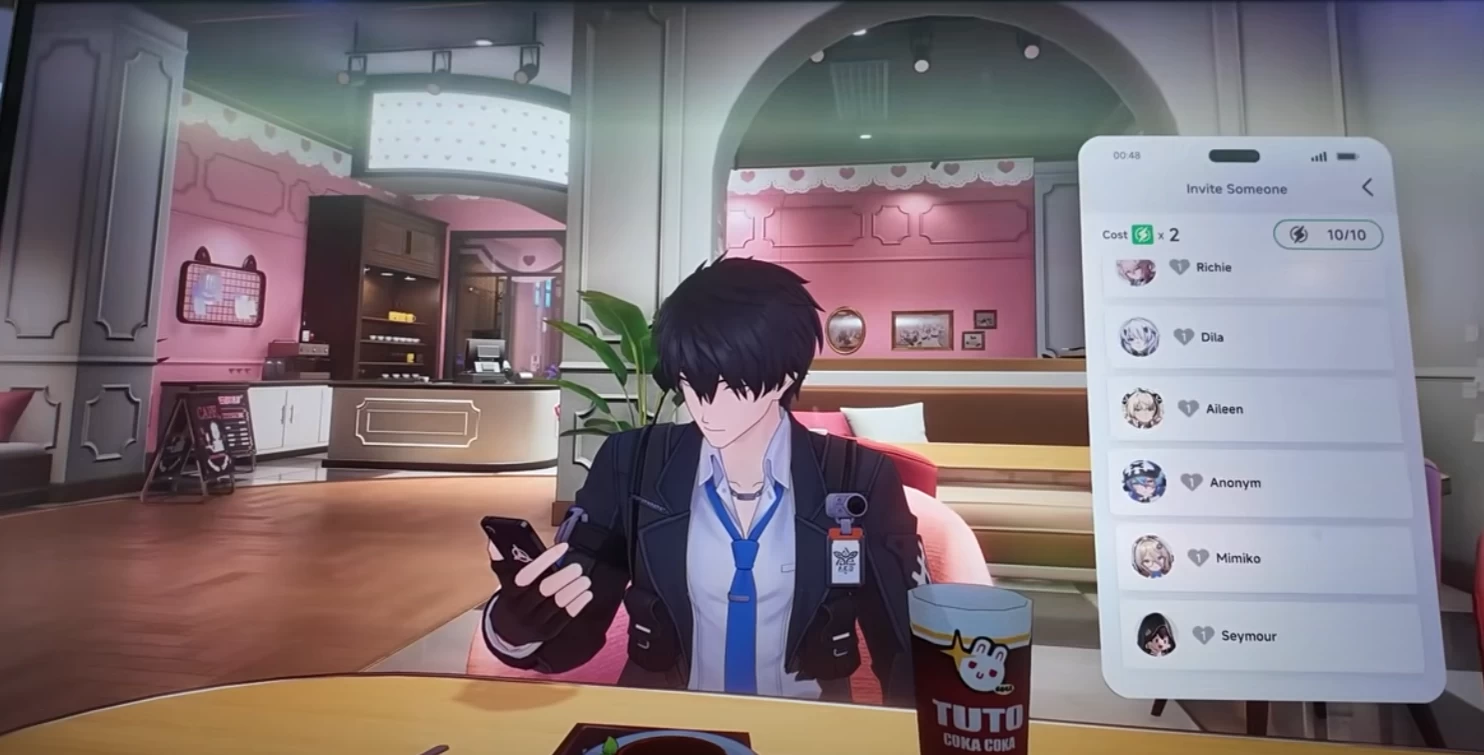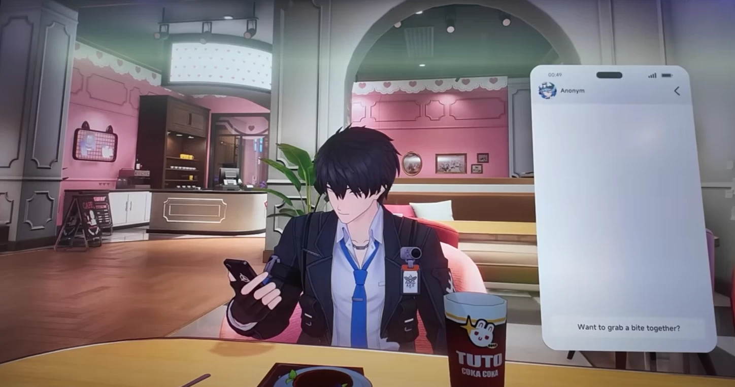 Если выбрать одну из девушек, откроется текстовый чат с заранее прописанными диалогами. Ничего особенного в них нет — персонаж предлагает девушке попить кофе вместе, после чего она сразу соглашается и мгновенно прибывает.
