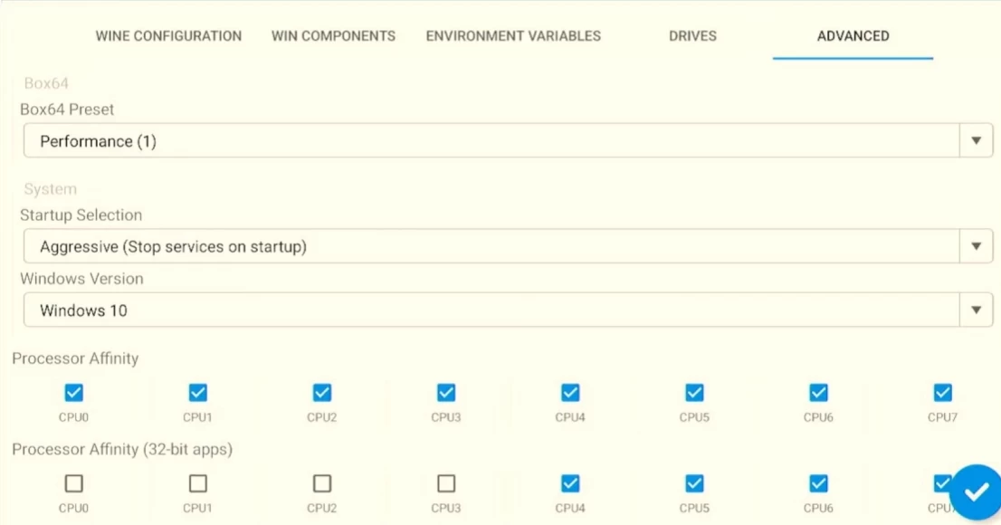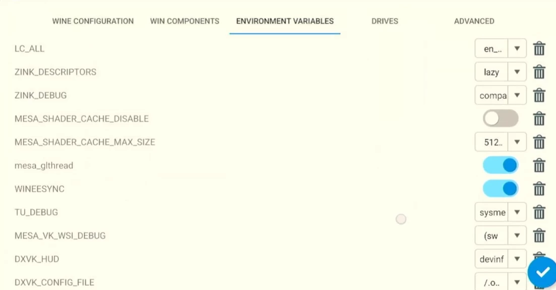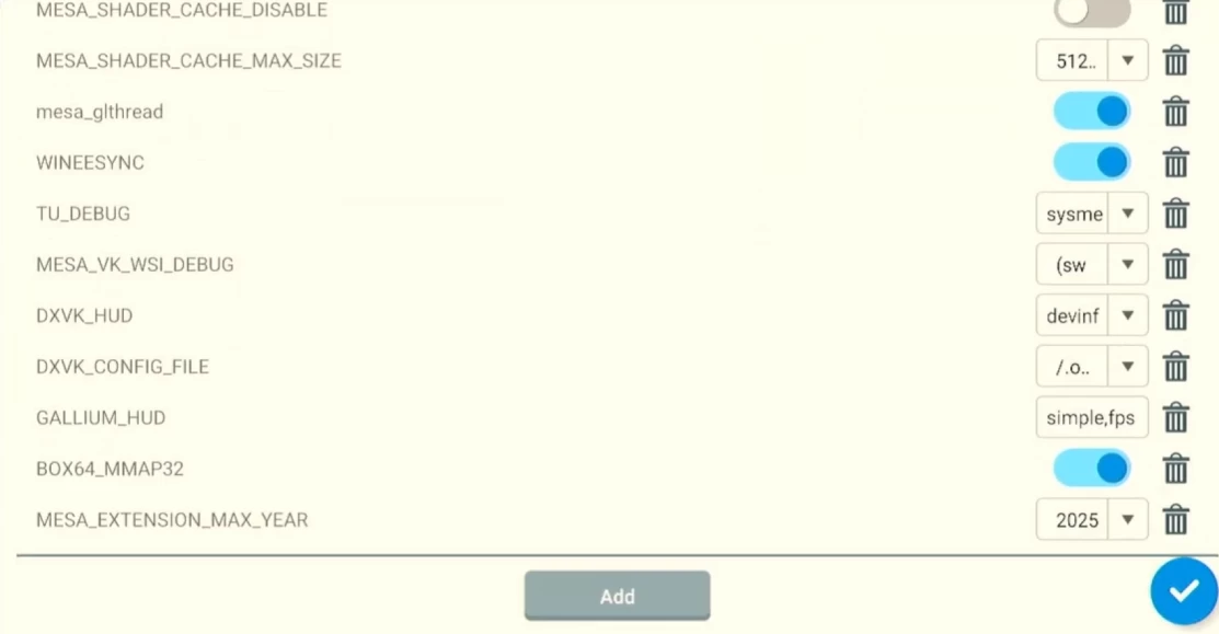- Драйвер — Turnip 25.2.0 (Adreno) с 4 ГБ ОЗУ и галочкой напротив «Enable direct rendering».
