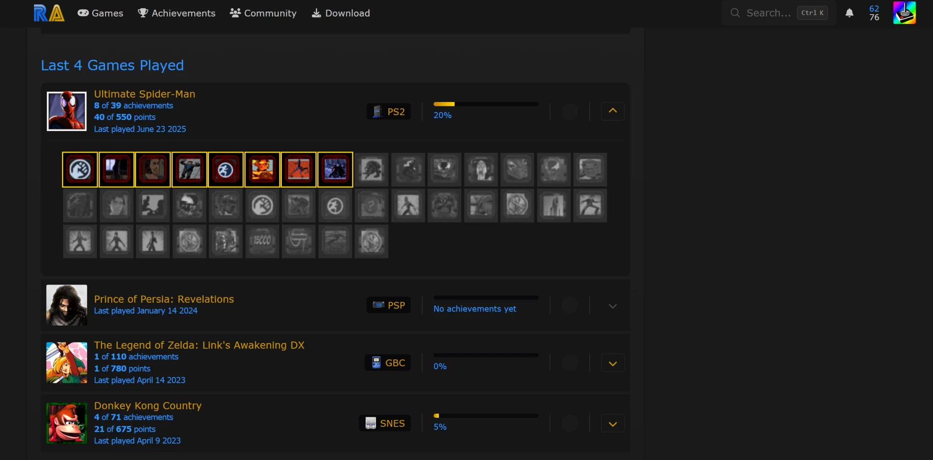 Если что, я могу помочь с поиском нужной вам игры, которая будет работать с RetroAchievements. Благодаря этому, вы будете получать достижения в любимых вами проектах.