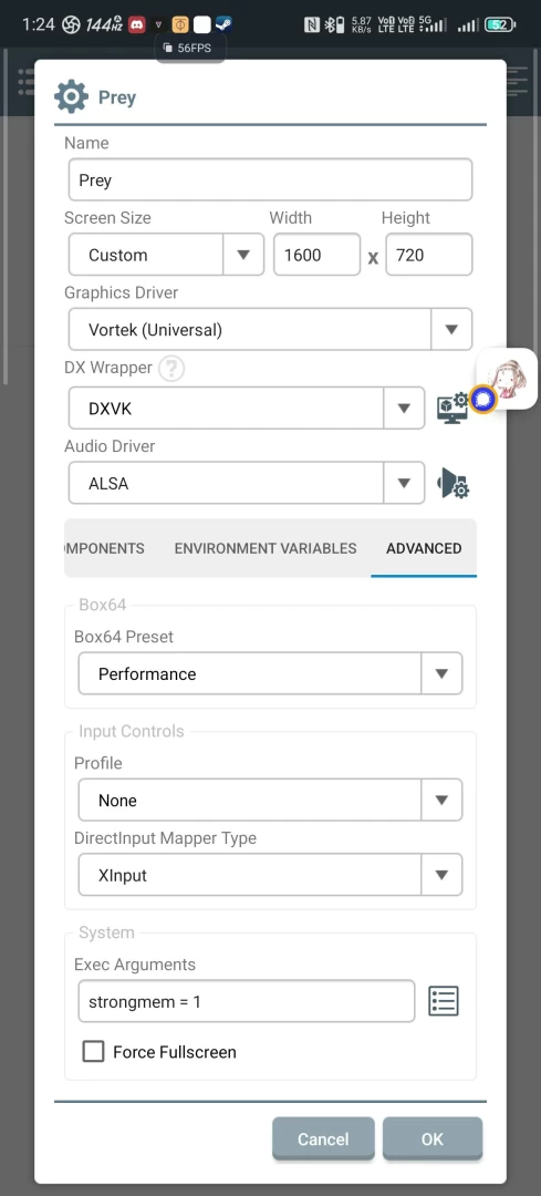 Настройки GameHub и Winlator для игры в Prey (2017) на Android