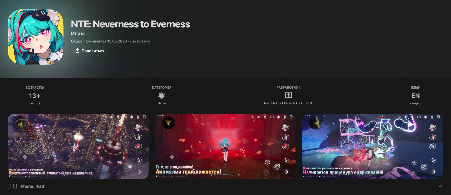 Neverness To Everness могут выпустить в середине мая, если верить свежей странице игры в App Store.