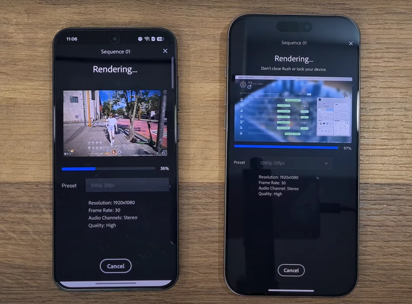 Если вы собираетесь рендерить видео в 1080p30, то лучше использовать iPhone — отрыв в 60-70%.