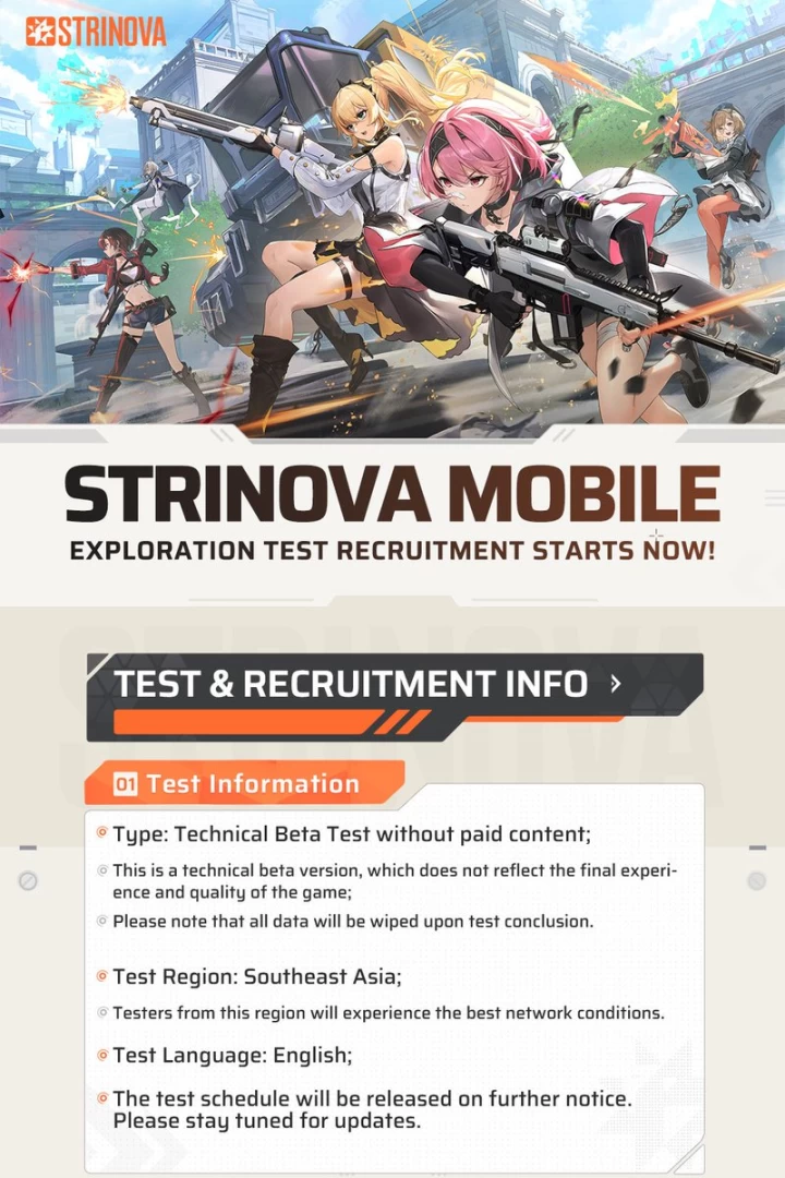 Подайте заявку на технический тест Strinova Mobile. Он пройдёт для iOS и Android геймеров.
