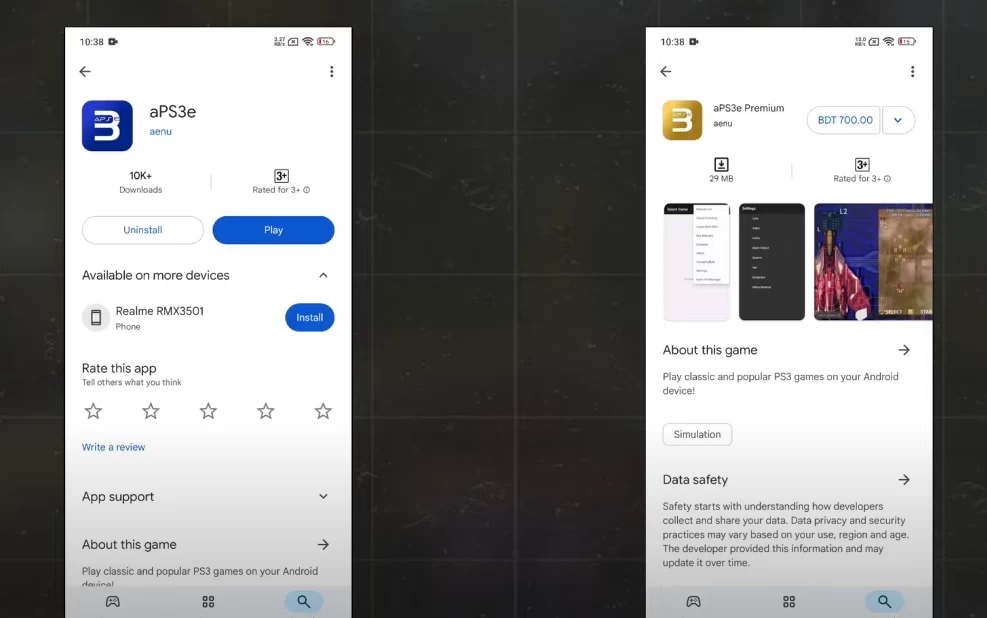 На данном этапе aPS3e создан на базе RPCS3, как и мобильная версия RPCSX. Тем не менее, aPS3e предлагает более понятный и современный интерфейс, а также улучшенную производительность.