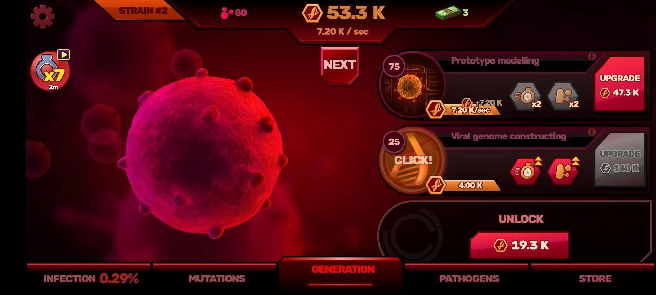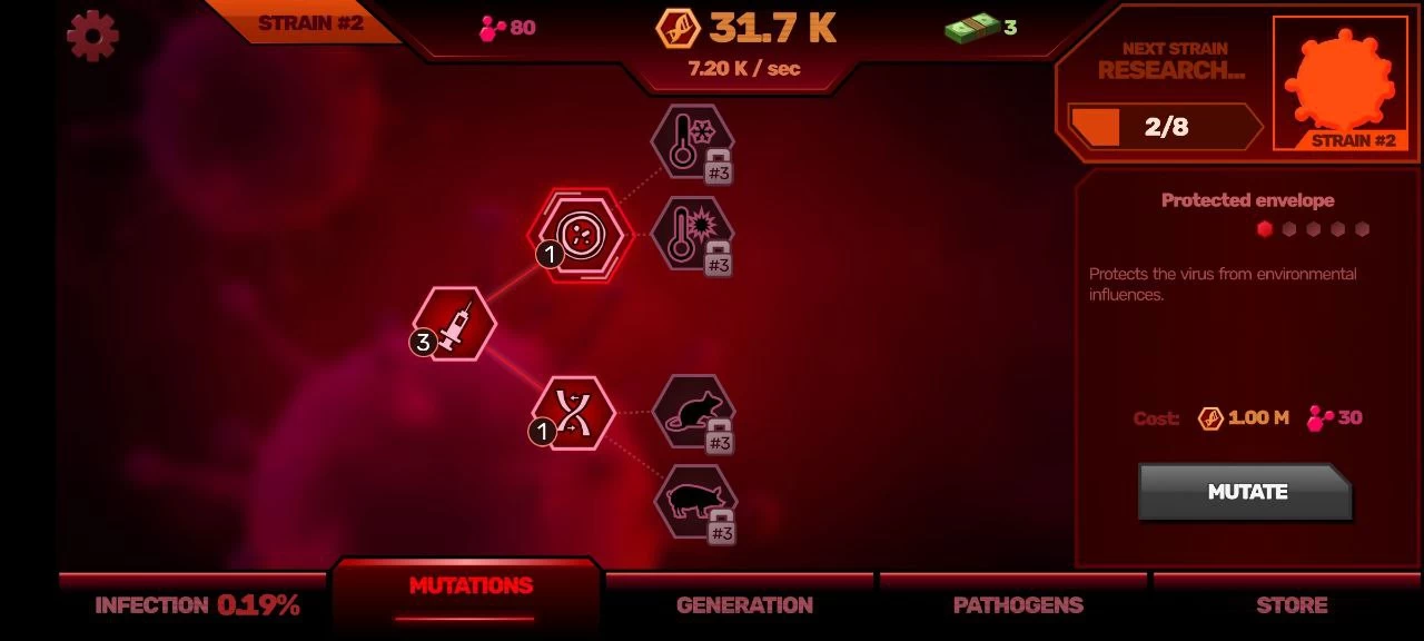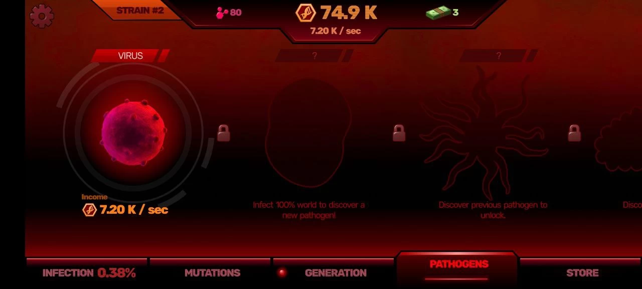 Стоит отметить, что русского языка в игре нет, как и мультиплеера. По своей сути это скорее кликер, чем симулятор и стратегия, которыми является оригинальная Plague Inc. Тем не менее, оценка 2,2 из 5 в Play Market не отражает действительности — в Patient Zero нет ломающих геймплей багов, ограниченных премиальных предложений и рекламы, по крайней мере для жителей РФ.