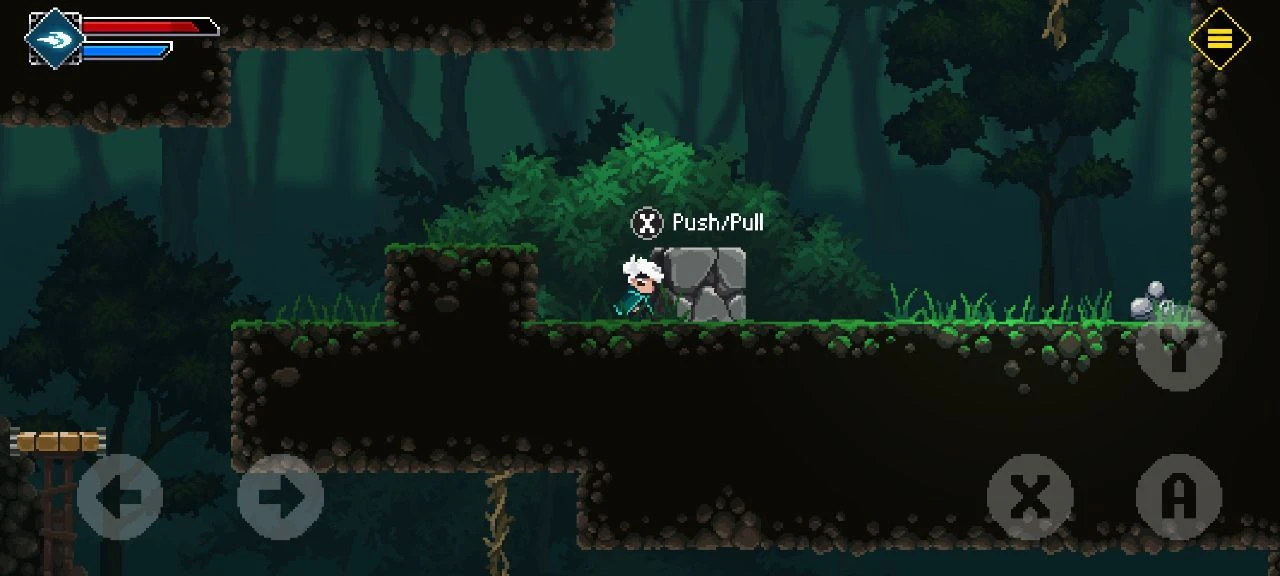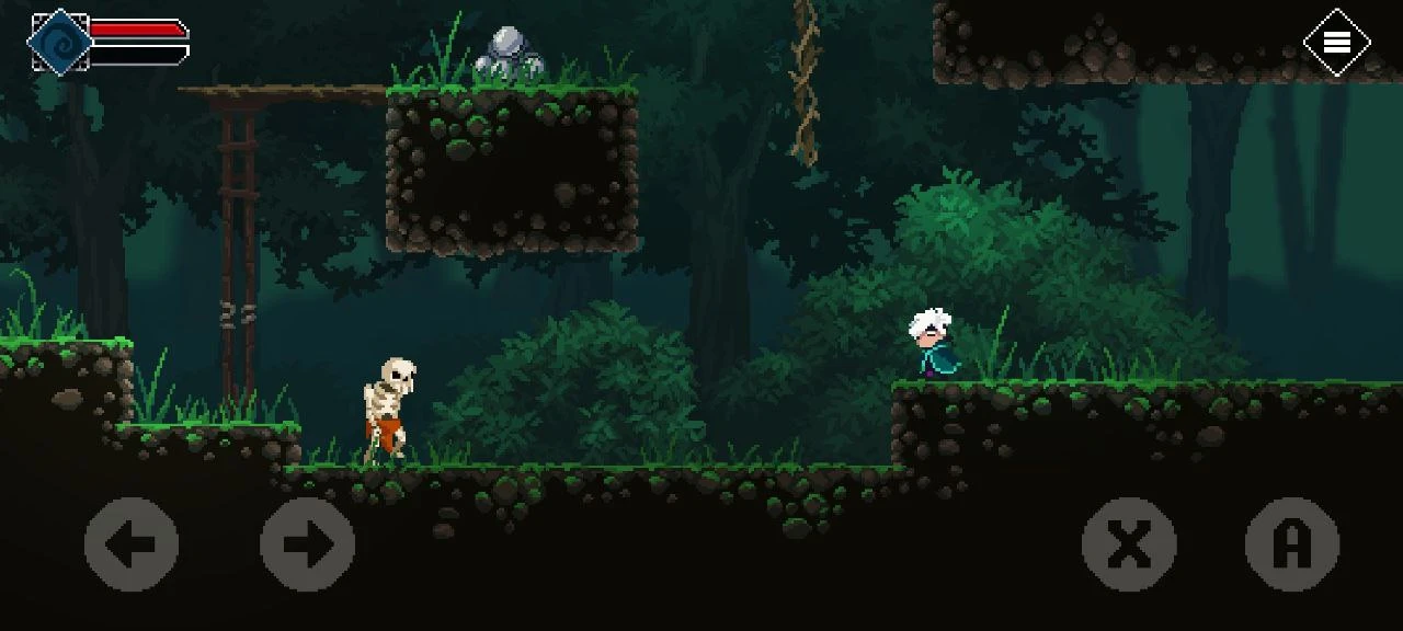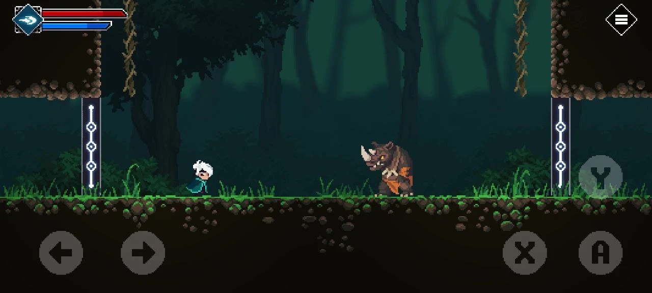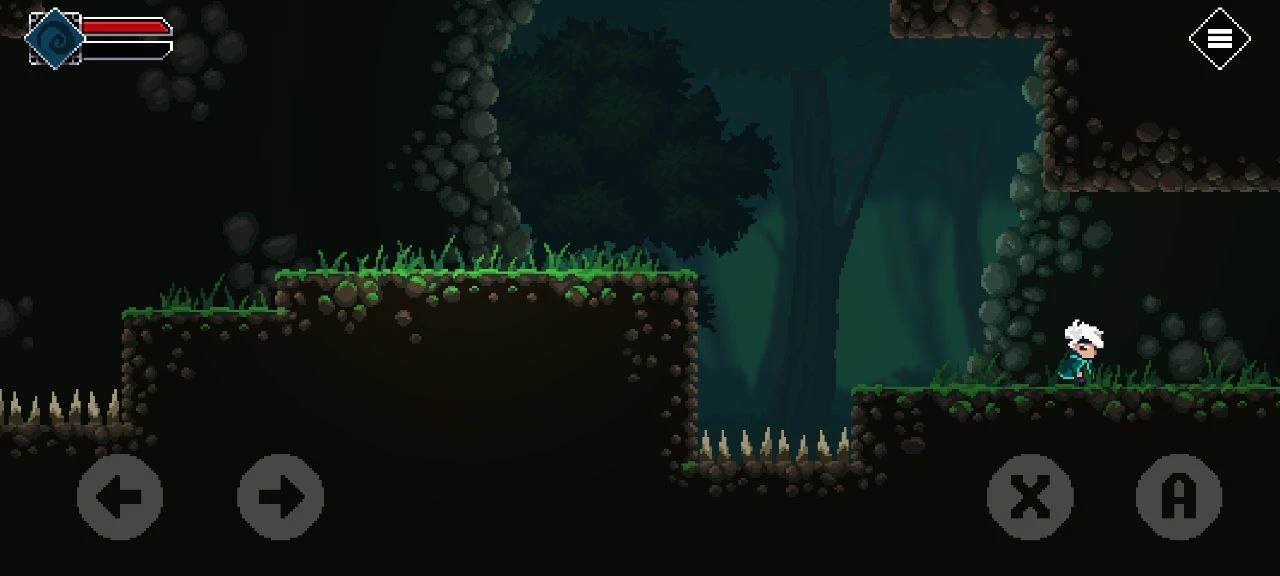 Вскоре игрок сталкивается с классическими ловушками-шипами, которые нужно перепрыгивать. Также появляется кнопка атаки в ближнем бою.