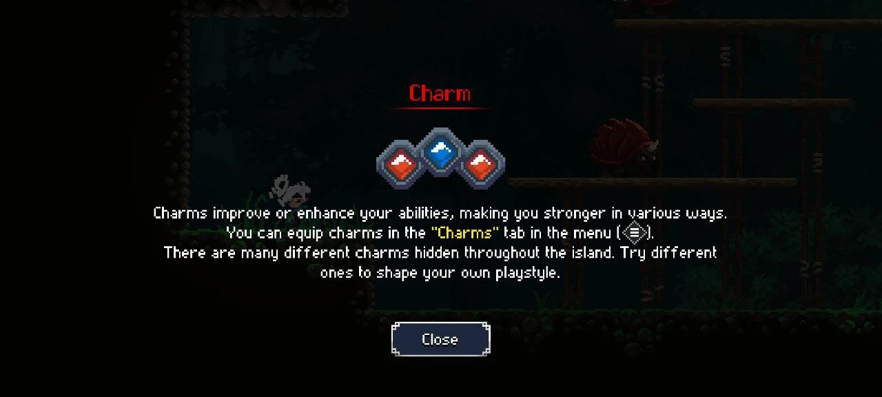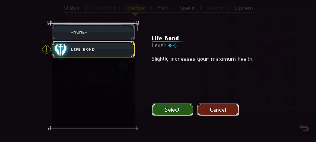 Ещё игрок может наткнуться на разные чары, которые улучшают его статы и способности. Например, чары «Life Bond» немного повышают максимальное HP. Отмечу, что у каждой чары есть свой цвет и слот.