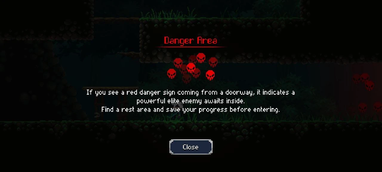 Вскоре игрок найдёт зону с красными черепами. Это значит, что в ней его ждёт босс. Игра советует найти неподалёку камень для сохранения прогресса прежде чем «траить» босса.