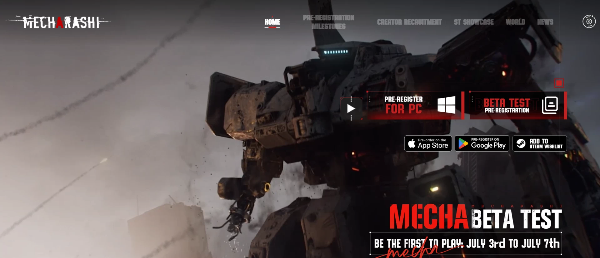 Разработчики Mecharashi объявили официальную дату релиза — 31 июля 2025 года. Сейчас проходит предрегистрация через App Store, Steam и официальный сайт — страницы в Google Play ещё нет. Через сайт можно также записаться на бета-тест, который пройдёт с 3 по 7 июля. Вам нужно просто указать свою электронную почту. Приглашение придёт на указанный адрес с информацией и инструкцией по тому, как скачать клиент. Предзагрузка бета-версии начнётся 2 июля в 17:00, а тестовые сервера откроют 3-го числа в 17:00 по мск.