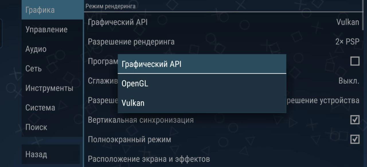 Сперва пройдёмся по графическому API — Vulkan для чипсетов Snapdragon и OpenGL для остальных (Mali и так далее). На самом деле это слишком упрощённая «картина мира»: Vulkan улучшает производительность на бюджетных устройствах, а OpenGL идеален для высокой производительности на более мощных девайсах. Если оба варианта недоступны, используйте программный рендеринг.