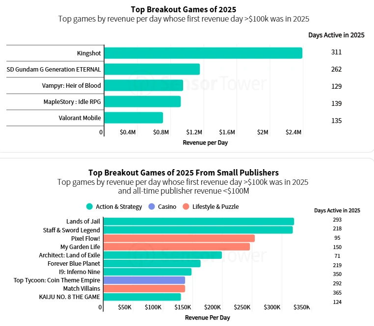 - Kingshot заняла топ-7 по внутриигровым продажам к декабрю 2025 года.