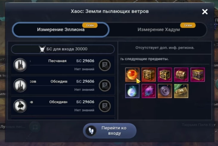 Для владельцев сезонных персонажей открылась новая территория — Хаос: Земли пылающих ветров. Для доступа нужно иметь хотя бы 30 000 БС. За прохождение выпадает обычный лут и Эссенция Шикруа. Также новички смогут прокачивать Кристалл Хаоса до 300 уровня через Сундук с 10 Кристаллами яркого пламени Хаоса.