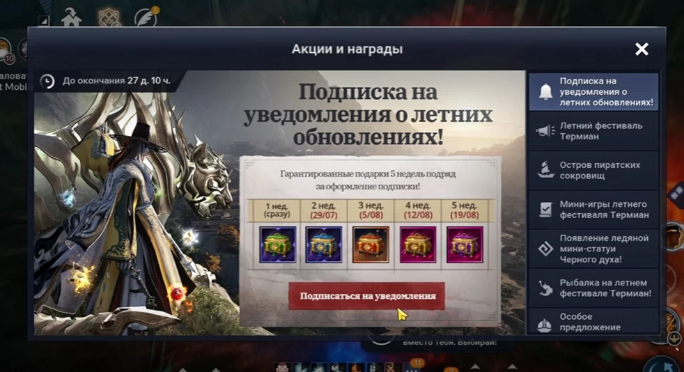 Среди ивентов стоит подписаться на уведомления о летних ивентах, чтобы получить взамен награды в виде сундуков.