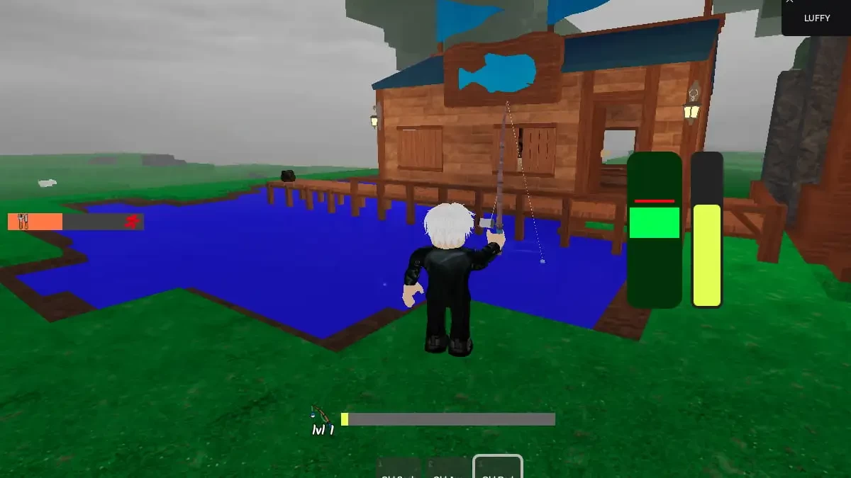 Для рыбалки в 99 Nights in the Forest нужно сначала найти удочку. Получить её бесплатно можно в хижине с рыболовными снастями. Хижина появляется на карте после того, как вы прокачали костёр в лагере до 2-го уровня. Перепутать здание не получится — на крыше вы увидите символ синей рыбы и 3 синих флага.