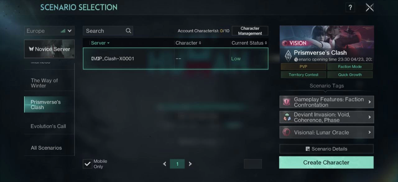 Сервера «Prismverse's Clash» предлагают PvP-контент, но на этот раз вы присоединитесь к одной из двух враждующих фракций — в ходе закрытия сюжета вы узнаете, почему они не любят друг друга. На этих серверах вы можете устраивать рейды на вражеские базы, если они стоят не в безопасной зоне.