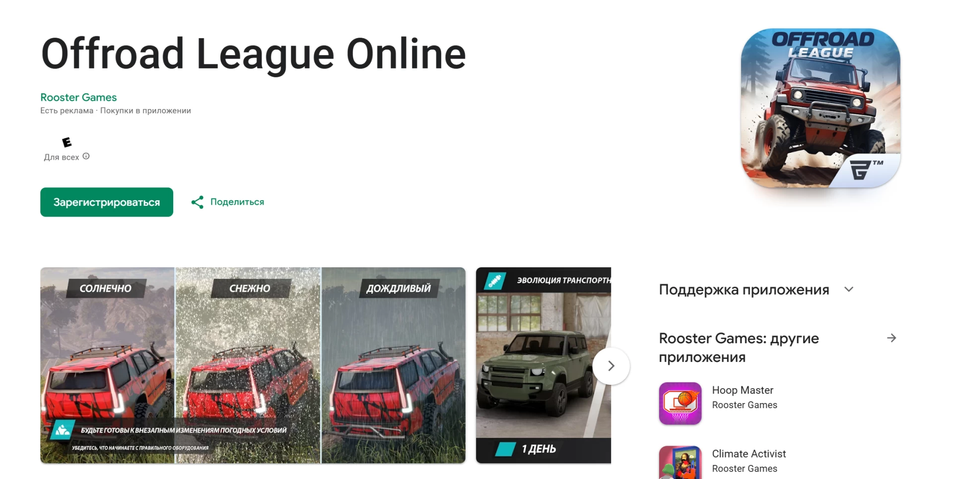 Для Offroad League Online появилась страница в Google Play с предрегистрацией. Пока можно поиграть в iOS-версию.