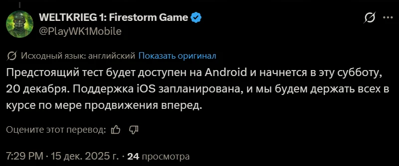Пока что в официальном ТГ-канале игры нет упоминания предстоящего теста. Вместо этого разработчики держат в курсе свою англоязычную аудиторию через страницу в соцсети X. Игрокам из других стран рассказали, что в ближайшее время начнется прием заявок на тестирование.
