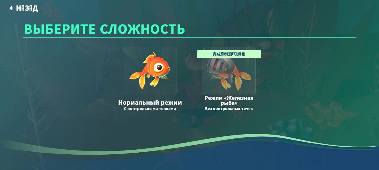 В I Am Fish есть два уровня сложности, но в первый раз проект можно пройти только на самом простом уровне. Стоит отметить упрощённую графику и возможность выбрать 30 или 60 FPS. Субтитры в сюжете полностью на русском языке, что очень хорошо.
