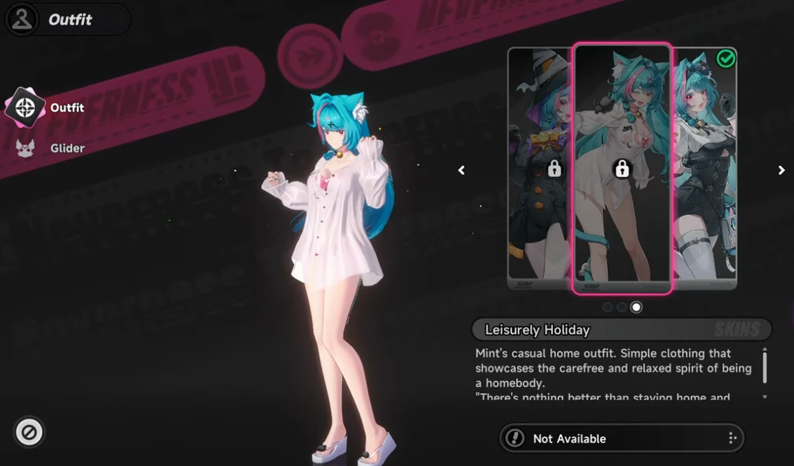 В бета-версии также показали ночнушку «Пушистый летающий тигр». В ней Нанали очень сонная.