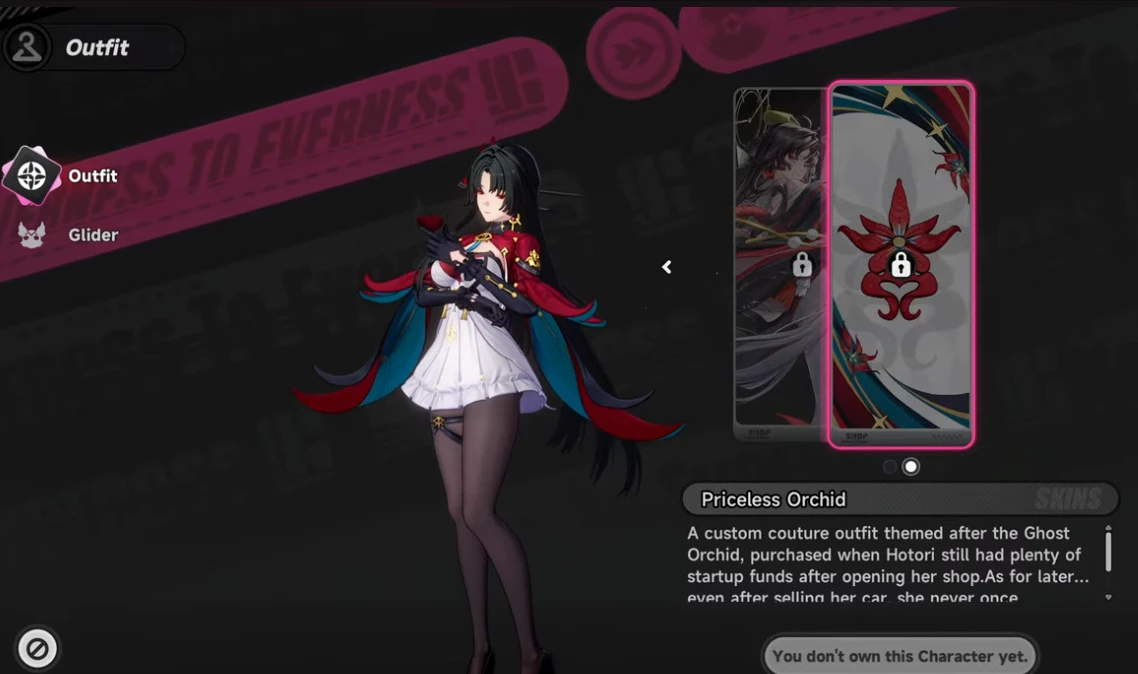 Хотори получит изысканный наряд «Бесценная орхидея». По сюжету она купила его, когда у неё было много денег после открытия своего магазина.