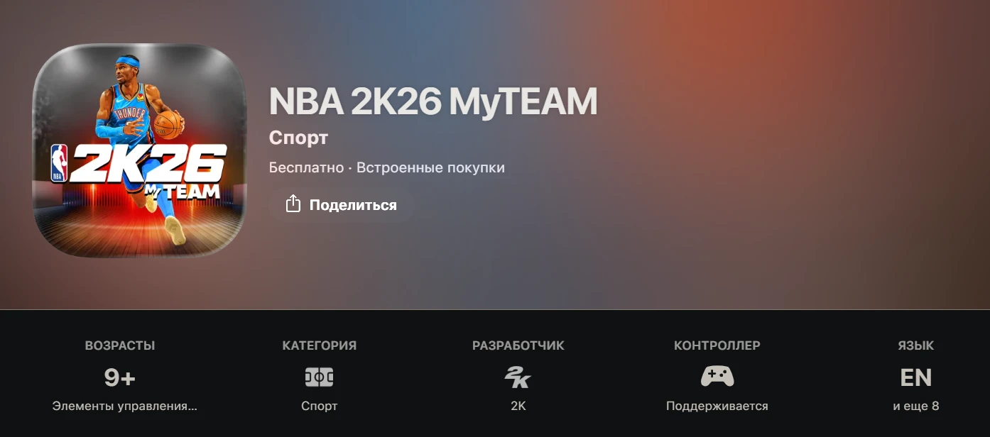 2K Games выпустили NBA 2K26: MyTeam Mobile в РФ и других странах. На момент написания новости клиент можно скачать через App Store, в Google Play висит прошлогодняя версия. Плюс мобильной версии в том, что вы можете переносить прогресс между разными платформами. Вес клиента составляет 3,8 ГБ. Поддержка русского языка не указана.