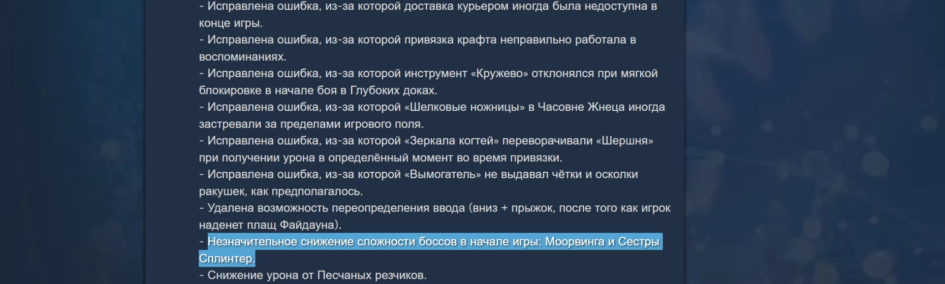 Несмотря на такие уступки со стороны разработчиков, не все игроки им рады. Так, в комментариях под патч-ноутом один человек сравнил мобов с «губками», намекая на их HP в сравнении с выдаваемым уроном Хорнет. Из-за этого многим игрокам приходится проходить Silksong с модами. Несогласные с этим мнением люди, наоборот, просят Team Cherry добавят сложность для ветеранов и не упрощать указанные аспекты игры.