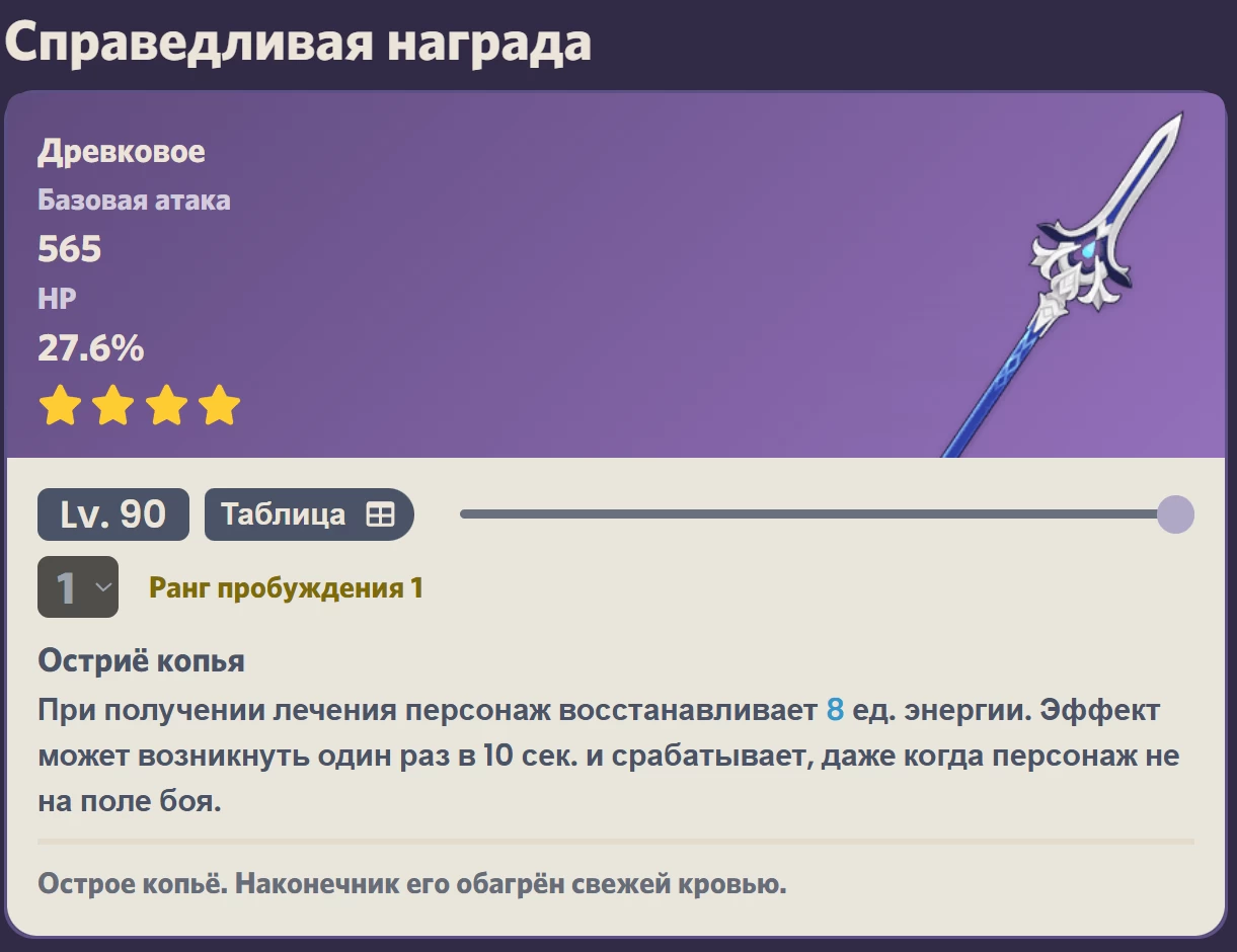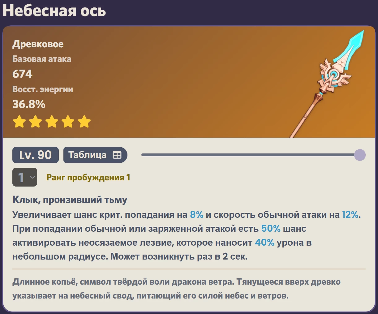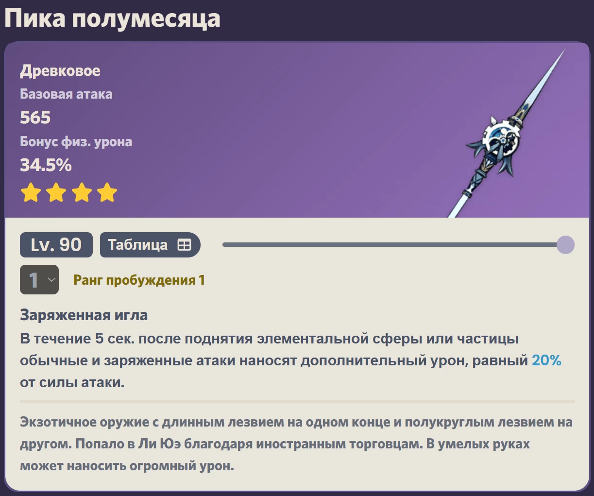 Разбил древковые оружия из Genshin Impact на тиры по их эффективности для персонажа Инеффы.
