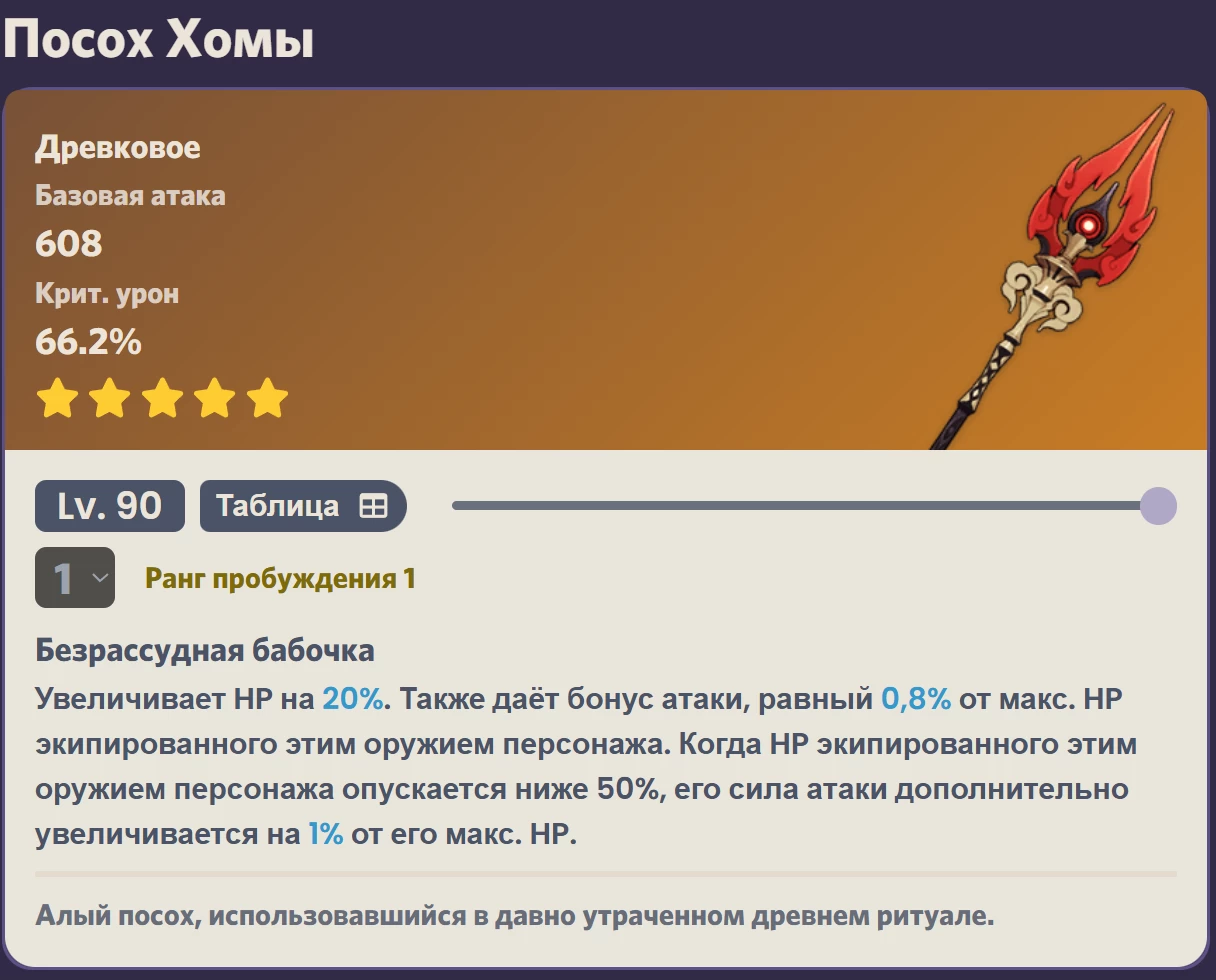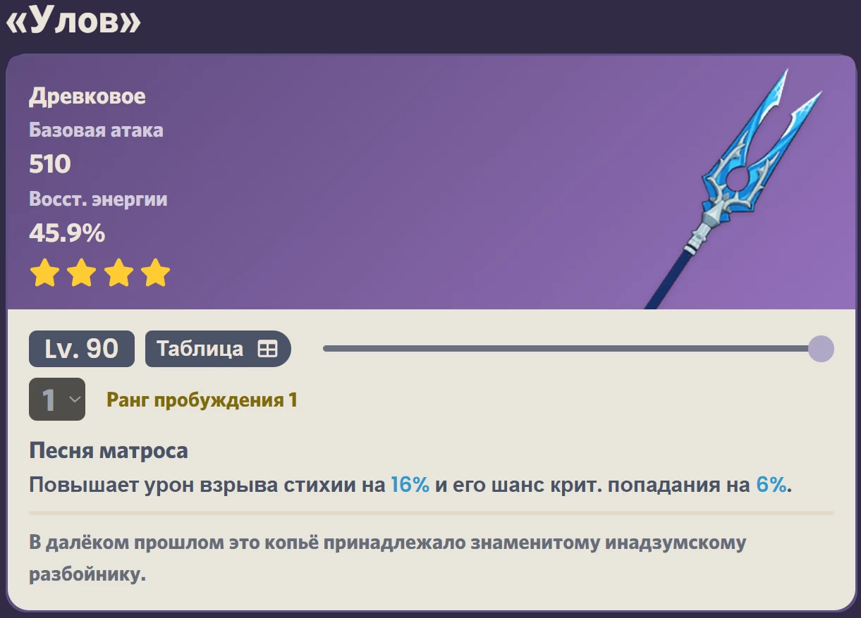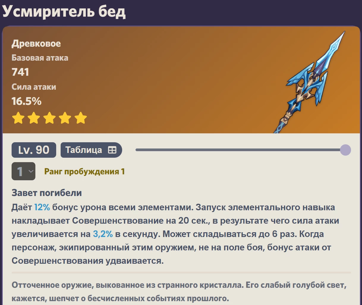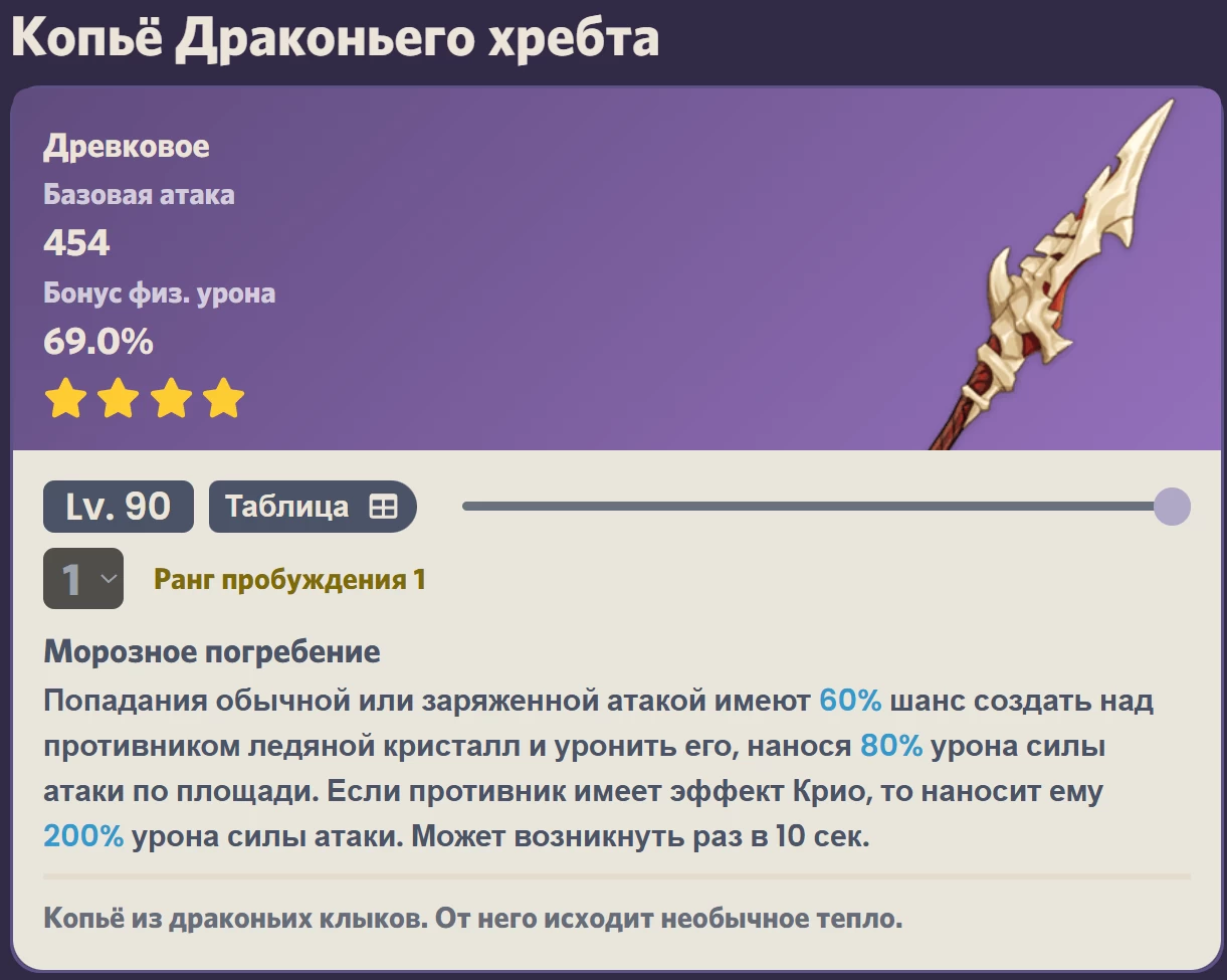 Разбил древковые оружия из Genshin Impact на тиры по их эффективности для персонажа Инеффы.