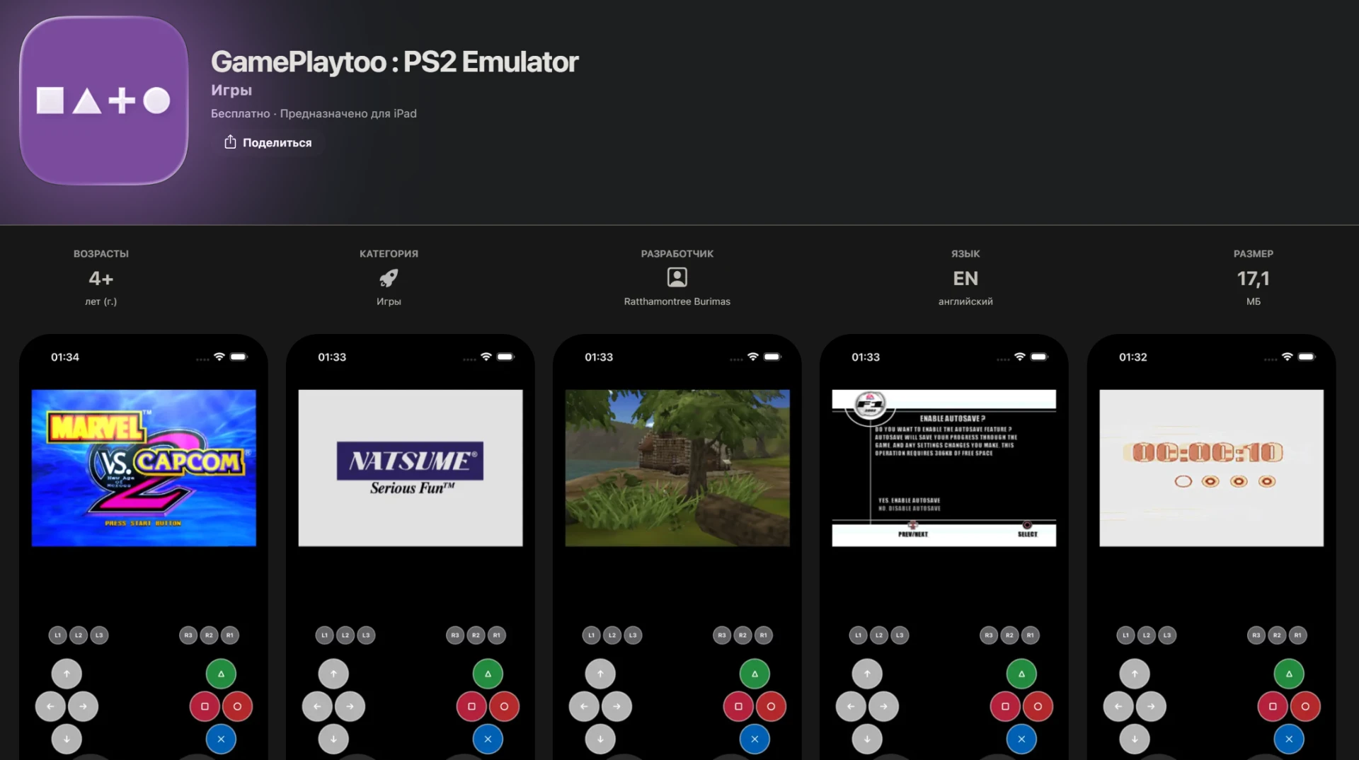 Если у вас iPhone или iPad, но хочется поиграть во что-то из эры PlayStation 2, то такая возможность появилась благодаря эмулятору GamePlaytoo. Его можно скачать через App Store РФ и других стран. Поигравшие отмечают низкий функционал по сравнению с более популярными решениями на Android в лице NetherSX2 и AetherSX2.