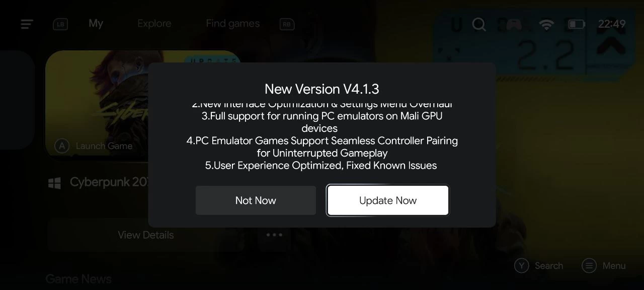 Через официальный сайт эмулятора GameHub теперь можно скачать свежую версию 4.1.3. Разработчики описывают изменения следующим образом: была добавлена возможность моментального запуска AAA-игр в облачном гейминге, был оптимизирован интерфейс и переработано меню настроек, а также была добавлена полная поддержка запуска ПК-игр на девайсах с Mali. Помимо этого, разработчики улучшили поддержку контроллеров в эмуляторе ПК, плюс улучшили пользовательский опыт и исправили известные проблемы.