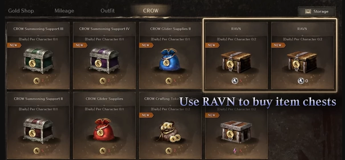 RAVN можно потратить на покупку сундуков с сезонной экипировкой. Эти предметы позже можно продать на аукционе за хорошую сумму: например, 12 000 кристаллов. После окончания сезона сундуки из прошлого сезона становятся недоступными. Но если вы успели достать из них предметы, вы можете продолжить их прокачивать.