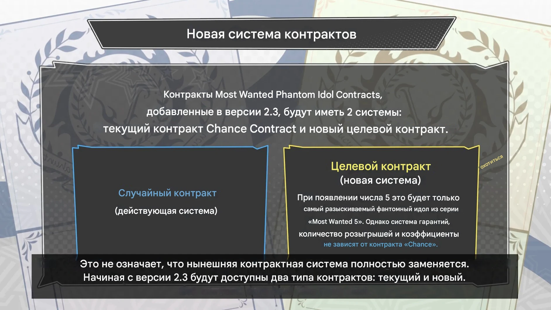 С версии 2.3, о всех нововведениях которой можно прочитать в официальном посте, в P5X появилась параллельная гача-система. Она работает немного иначе. Если вы не получили 5-звёздочного персонажа за 109 круток, то на 110-ю крутку вам обязательно выпадет 5-звёздочный герой. Шанс выпадения всех воров составляет 0.4%, но все воры, которые вам выпадают с этой гача-системой, будут баннерными.