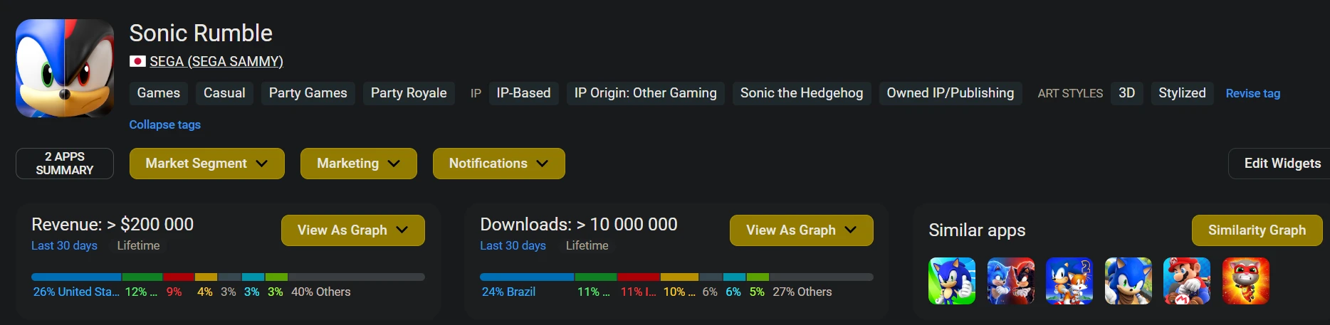 Больше всего Sonic Rumble скачали в Бразилии, но в топ-3 стран по донатам входят США, Канада и Австралия.