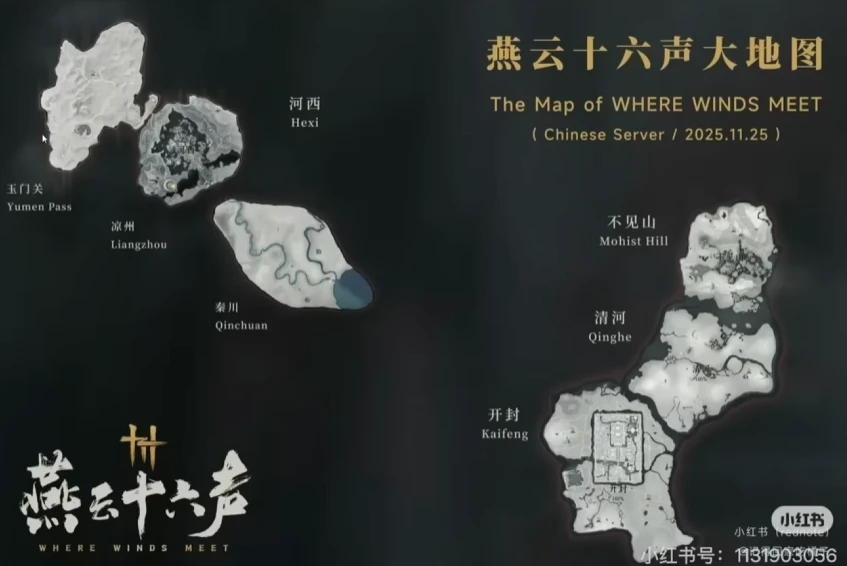 Что касается размеров региона Hexi, то его карту можно посмотреть на скриншоте из китайской версии Where Winds Meet.