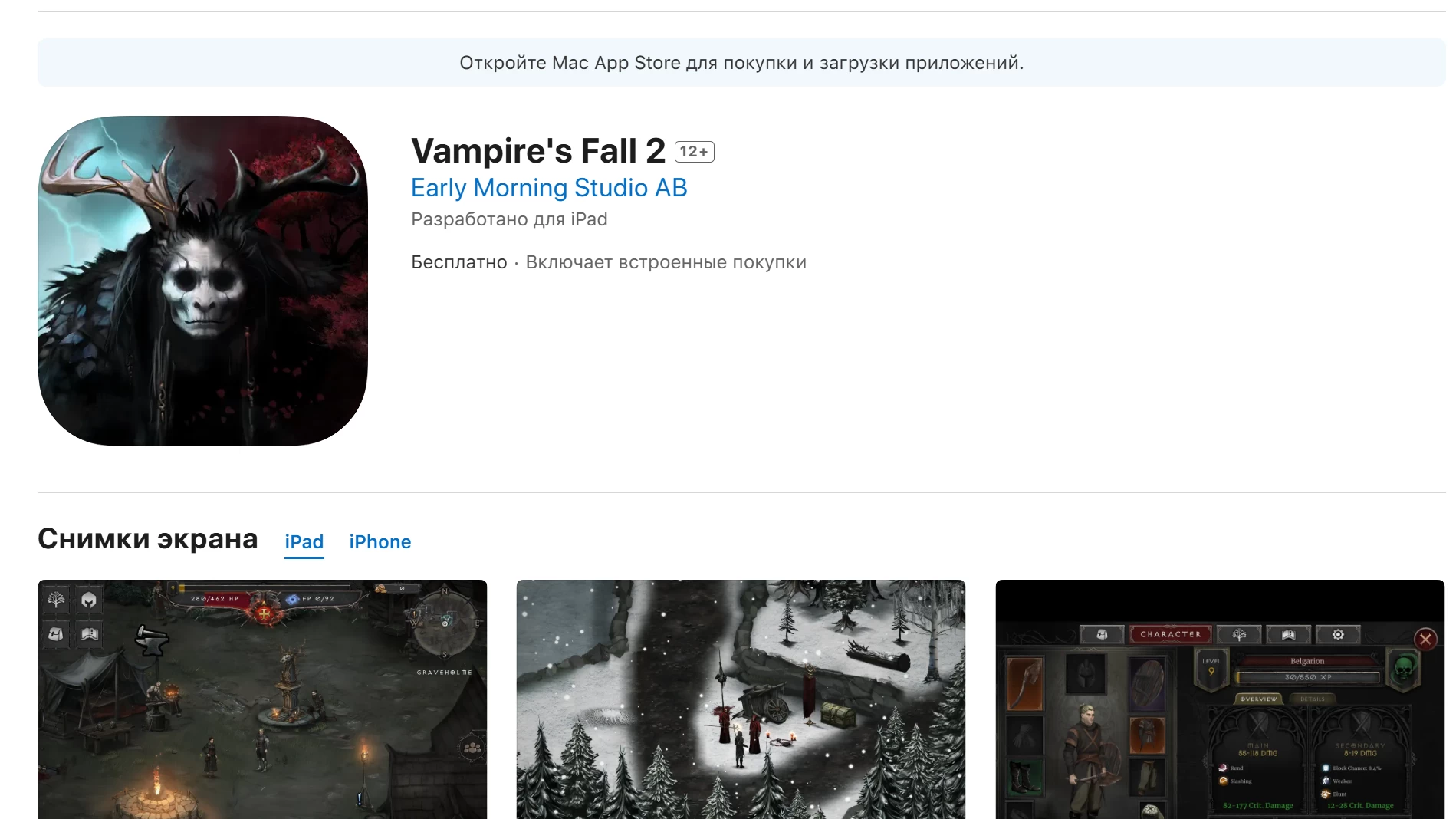 Разработчики мобильной игры Vampire's Fall 2 из Early Morning Studio ранее открыли страницу в Play Market, где проходит регистрация перед релизом. Некоторые читатели AppTime, имеющие iOS-устройства, были раздосадованы этим — снова нет страницы в App Store. В итоге Vampire's Fall 2 появилась в этом маркете, только её можно бесплатно скачать и, возможно, уже начать играть. И это при том, что разработчики обещают выпустить проект на iOS и Android только в мае.