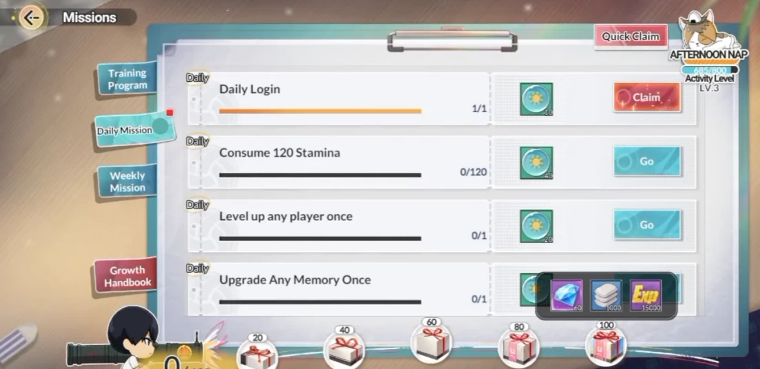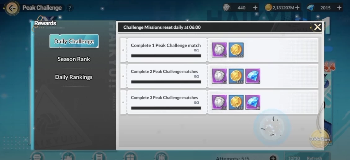Некоторые игроки Haikyu Fly High тратят большие суммы, чтобы получить бриллианты — премиальную валюту. Вы можете избежать этого, активно закрывая контент. В этом гайде я расскажу, какой именно. Первое, что вы делаете — проходите ежедневную тренировочную программу Training Program, где вы получите 95 бриллиантов. Также вам дают 60 бриллиантов за выполнение всех ежедневных заданий.