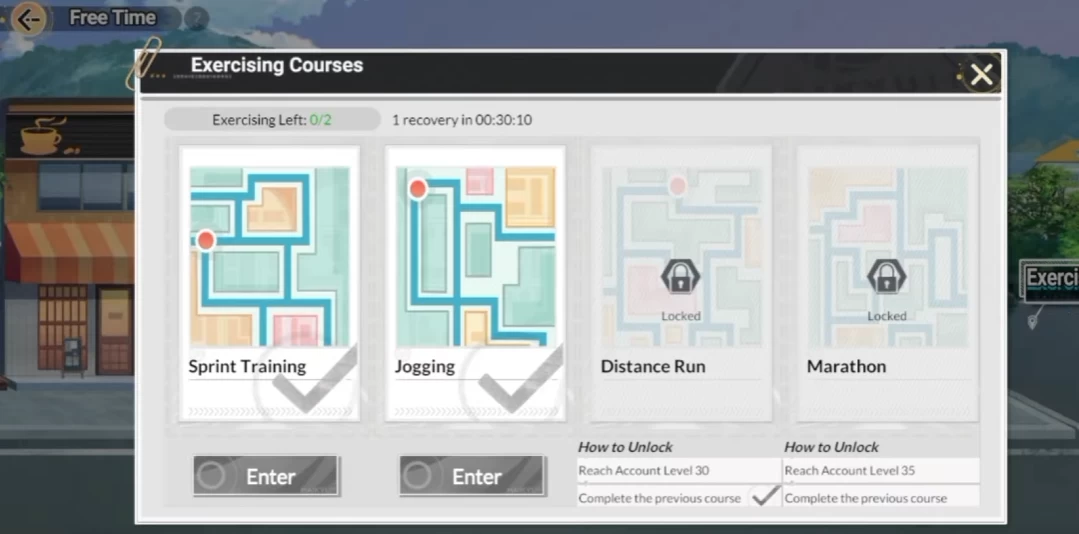 Пятый способ — выполнять короткие упражнения (Free Time → Exercising Courses).