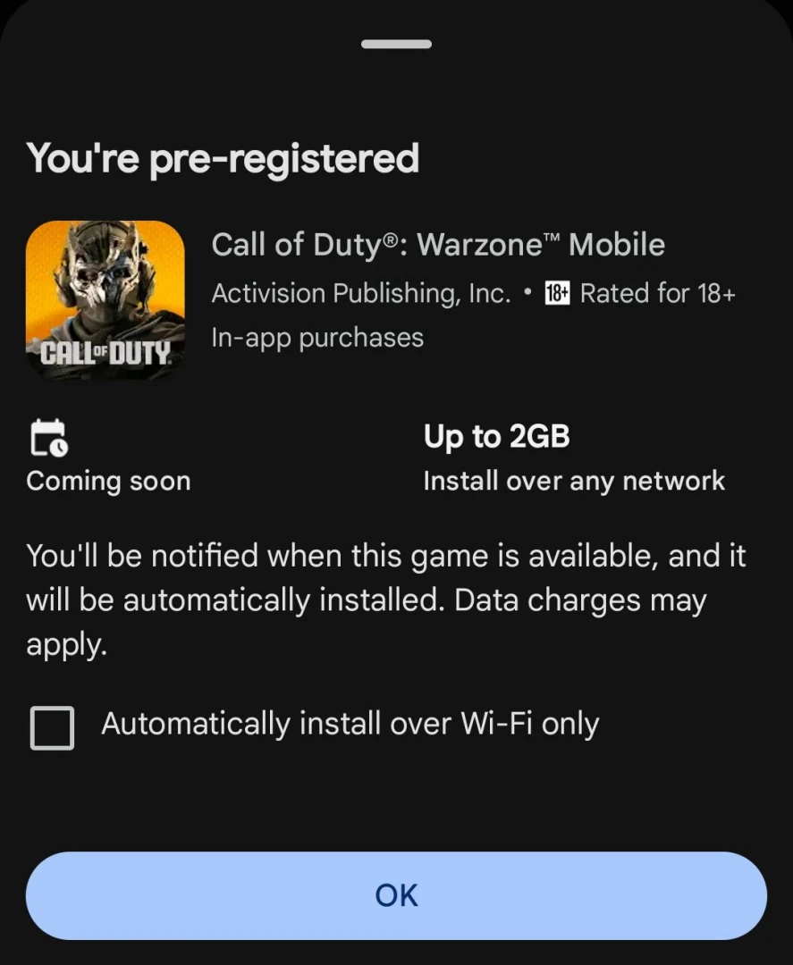 15 января множество Android-игроков заметили уведомление от Google Play о начале предрегистрации на Warzone Mobile. Некоторые смогли после этого скачать клиент игры. Об этом явлении также написал игровой портал GamingonPhone.