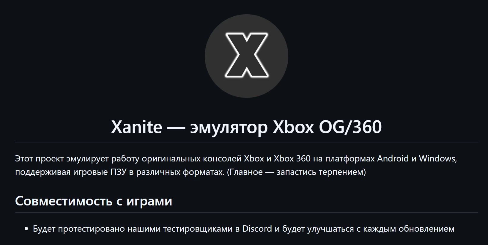 На GitHub появилась страница эмулятора Xanite. Его разработчики заверяют, что с ним можно будет запускать игры с Xbox Original и Xbox 360 на Android и PC. На момент написания новости ещё нет готовых билдов для обеих платформ. При этом указано, что «участники нашего Discord будут тестировать ранние билды, а мы будем улучшать Xanite с каждым обновлением».