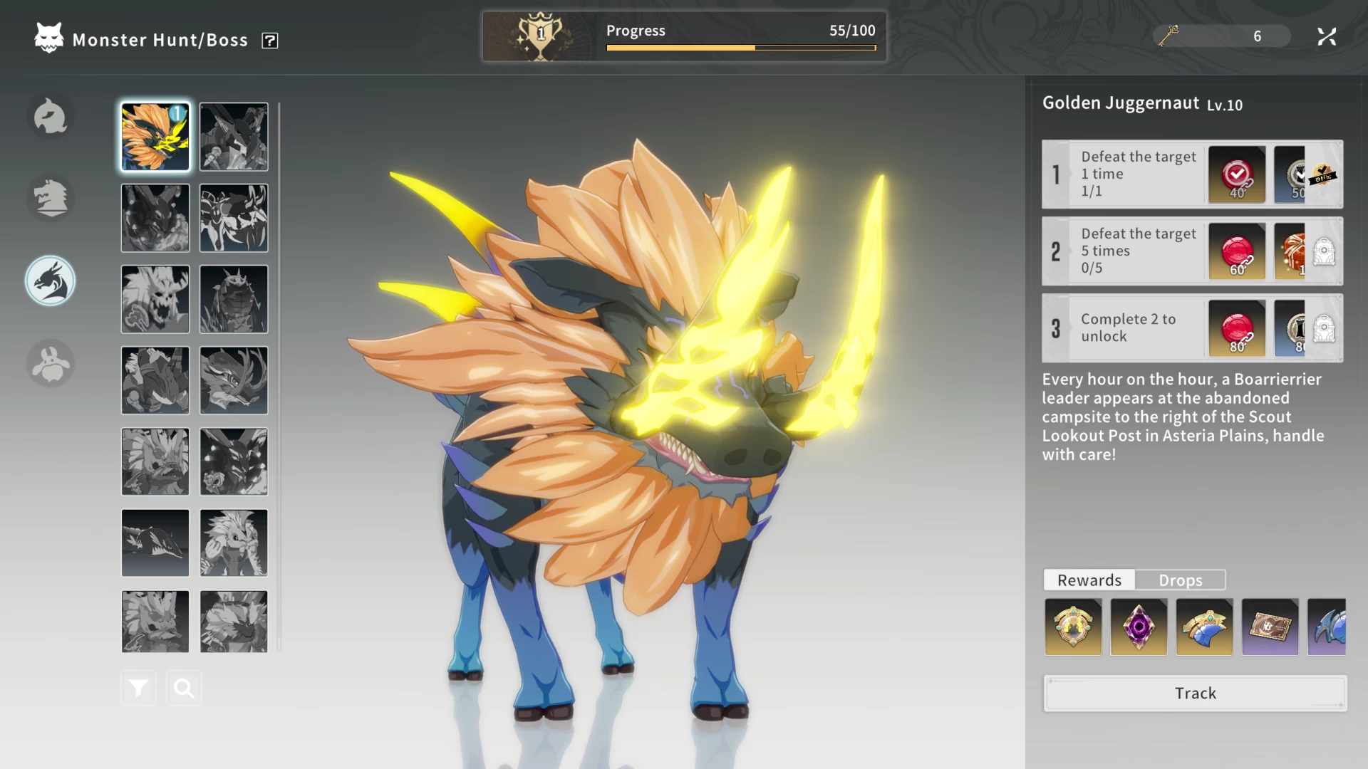 Охота на монстров разной величины является важной частью прокачки — вы пополняете свой бестиарий и получаете награды за первый и повторные убийства отдельного типа животных и боссов.