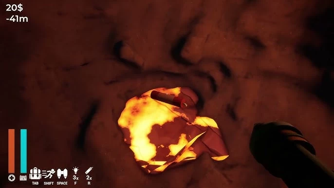 Порой под землёй спасают маленькие пещеры, причём вы можете увидеть полноценные проходы в небольшую шахту, где вас ждёт ящик с припасами. Самым неожиданным моментом будут светящиеся лавовые камни — если к ним прикоснуться, у вас будет постоянно уходить HP. Эти камни никак не разбить. Может быть их можно взорвать динамитом, но я это не пробовал.