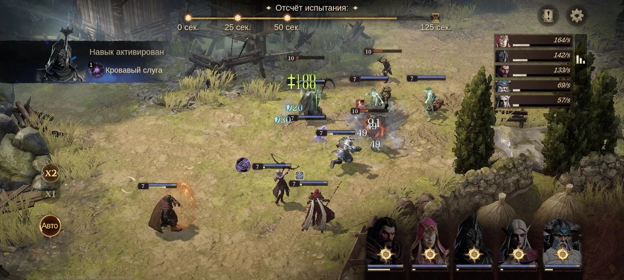 Местные битвы проходят в формате авто-баттлеров — выставляете бойцов по ячейкам и смотрите на сражение в реальном времени. Можно включить авто-режим и ускорить время (только x2). Также игра быстро знакомит вас с дополнительным контентом — привычными подземельями для фарма разных ресурсов: XP, премиальной валюты, золота, экипировки и так далее.